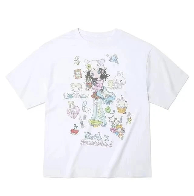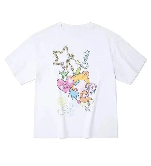 This women's cotton top features a playful cherry cartoon pattern and a relaxed, short-sleeve design ideal for summer. Available in sizes S to XXXL, it offers versatile comfort and breathability without harmful chemicals. Its straightforward style makes it an easy choice for casual wear.