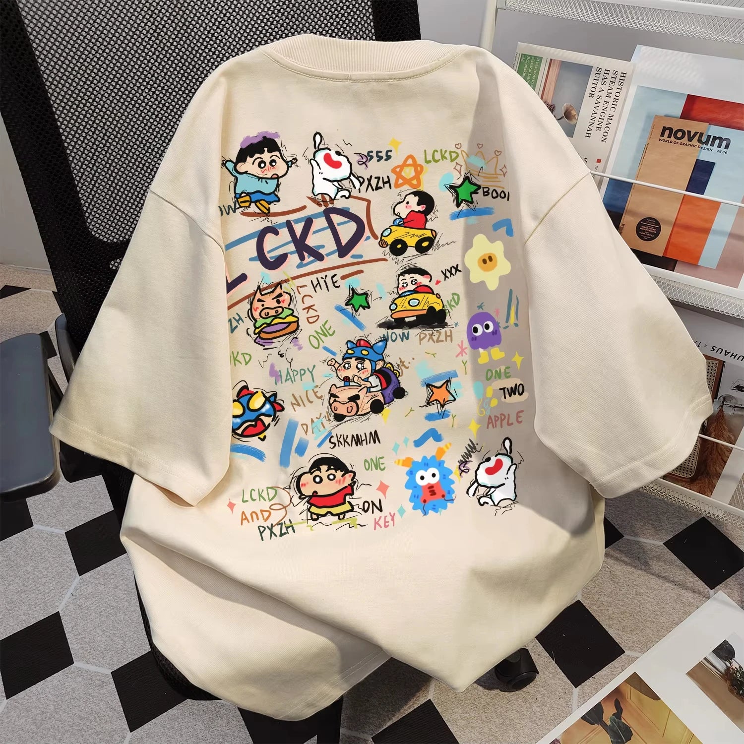 This unisex cotton-polyester blend T-shirt features a loose, heavyweight design with a playful cartoon print, ideal for summer casual wear. Available in a wide range of sizes from children to adults, it offers comfort and style with a round neck and short sleeves, perfect for sporty or hip-hop inspired looks.