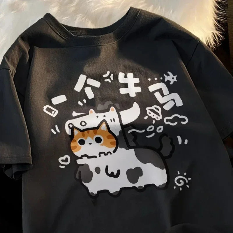 Versatile Funny Text Print Short Sleeve