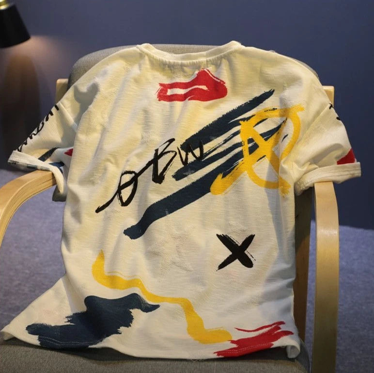 Graffiti Men's 100℅ Cotton T-Shirt Break Hole Tops