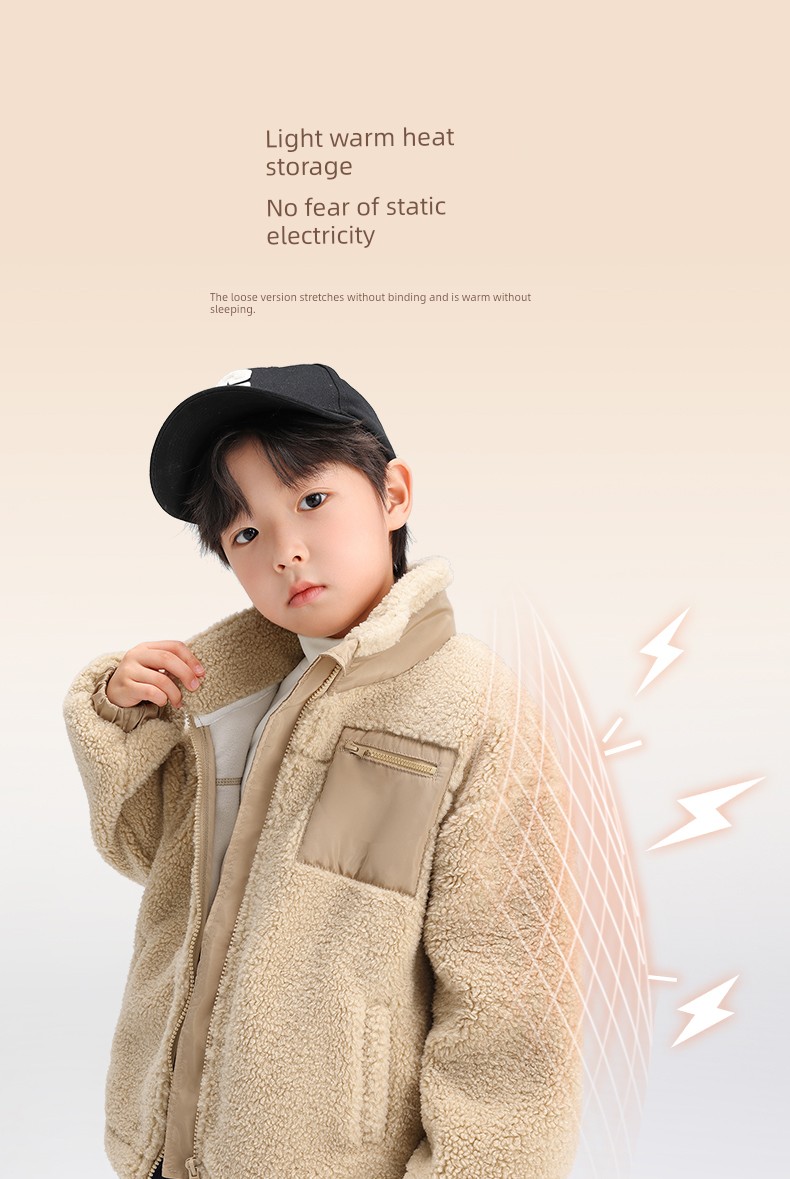This Kids Fleece Jacket is designed for boys aged 3 to 12, perfect for winter wear. Made from 100% polyester, it offers warmth with Heattech technology and durability with abrasion resistance. The jacket features a small lapel collar, a zipper closure, and a fixed hood for added protection. Its regular fit and long sleeves provide comfortable everyday wear, while being machine washable for easy care. Ideal for casual use during the colder months.