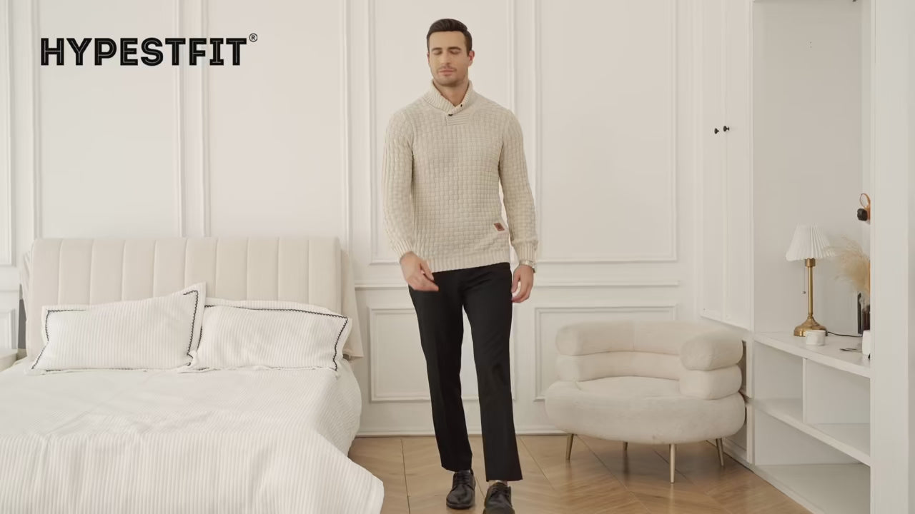 This men’s knitted pullover features a classic crew neck and long sleeves, crafted from polyester with a geometric pattern. Designed for smart casual wear, it offers comfortable warmth suitable for all seasons. The ribbed edges and button details add subtle style, while the flat knit technique ensures a smooth finish. Available in multiple sizes, this high-quality sweater combines durability with everyday comfort.