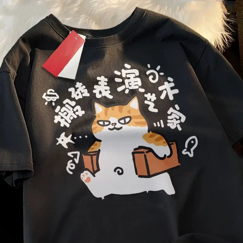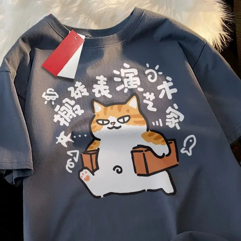 This men's summer cotton T-shirt features a breathable, soft fabric ideal for warm weather. Designed with a relaxed fit and short sleeves, it ensures comfort and ease. The modern art print with a funny dog image adds a casual, streetwear style. Easy to care for with machine wash instructions, it suits everyday shopping and casual occasions. Available in sizes M to 3XL, it offers a convenient pull-on closure and durable tat weaving for long-lasting wear.