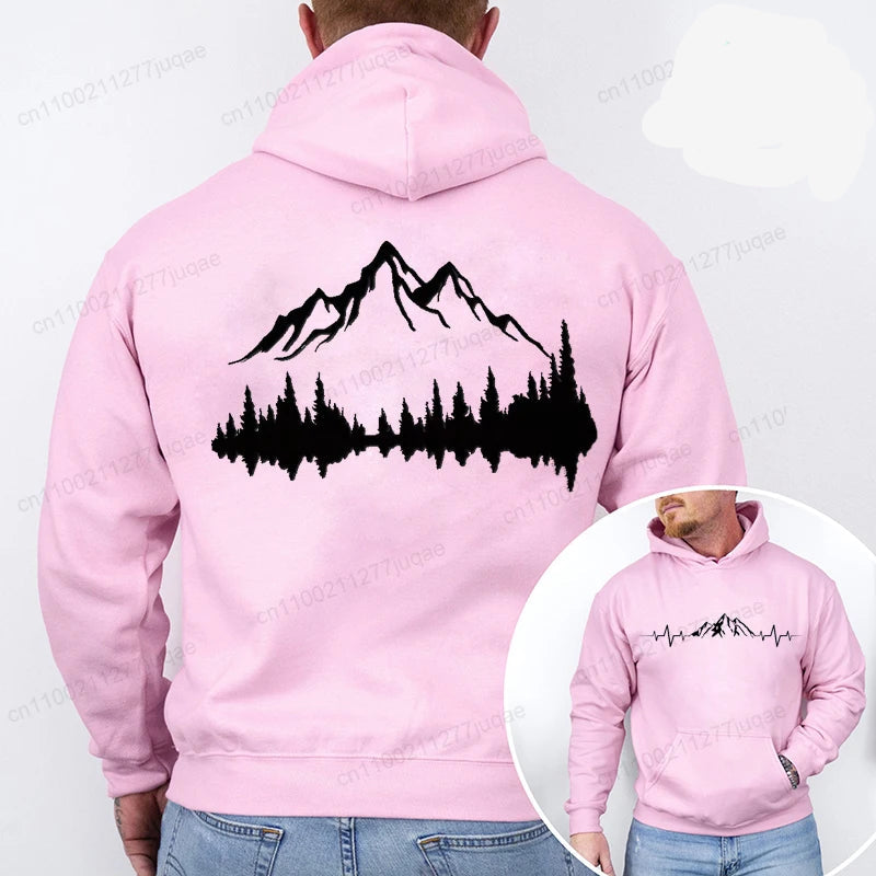 Sporty Streetwear Mountains Graphic Pullover Hoodie