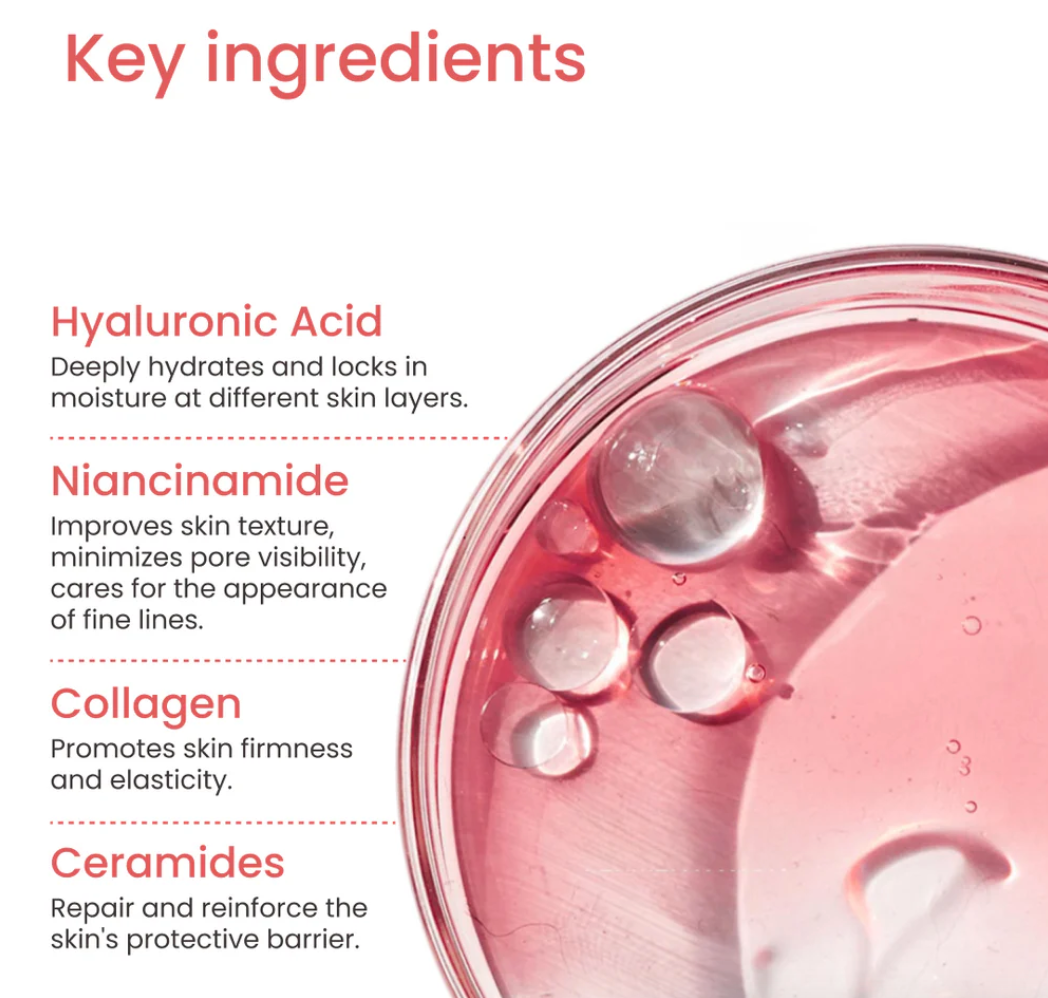 Quia Collagen Night Wrapping Mask works overnight to firm and hydrate your skin. This peel-off mask uses collagen and key ingredients like hyaluronic acid and niacinamide to improve elasticity, reduce fine lines, and brighten your complexion. It gently minimizes pores and soothes redness while deeply moisturizing dry or sensitive skin. Easy to remove in one piece, it leaves your skin smooth and radiant by morning. Suitable for all skin types, it is dermatologist-tested and free from artificial colors, fragrances, and harmful additives.